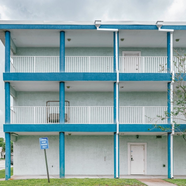 Visuellement la photographie de Rob Stephenson semble banale, une façade d’un bâtiment quelconque. Mais à y regarder de plus près il en émane une étrange régularité esthétique. Deux gouttières qui équilibrent visuellement le panneau et la balancelle du premier étage. Deux portes qui semblent s’aligner d’un palier à l’autre, et pas de fenêtre. Ca ne dit rien mais cela appelle l’attention.
